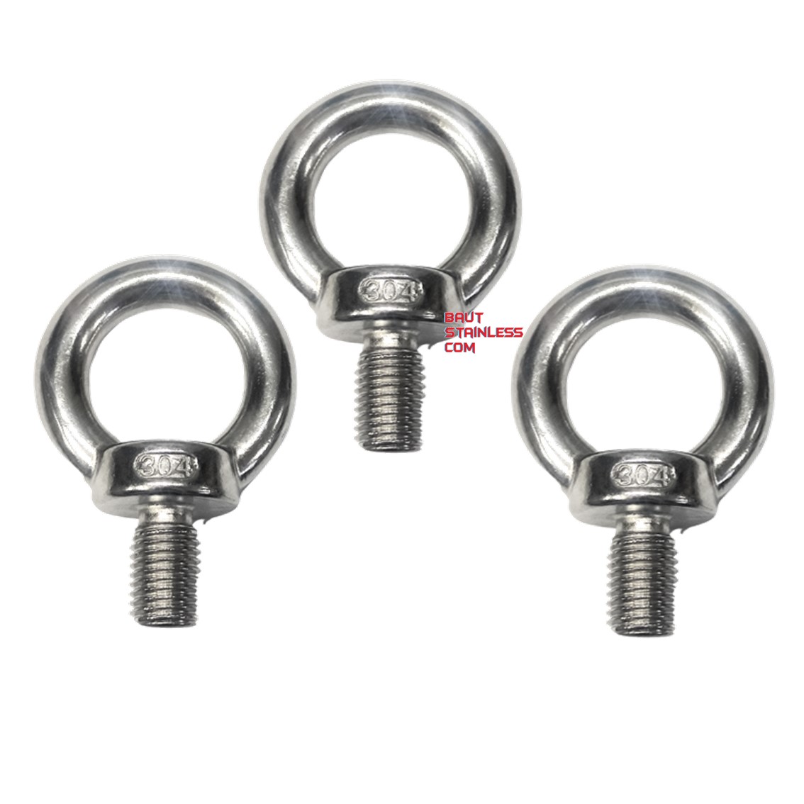 Material SS304 – A2 Eye Bolt is a bolt with a standing round head. Mounted on iron or other. The round head will be attached to a rope or sling to help the lifting process.