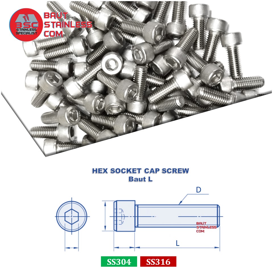 Allen Bolt / Bolt L is a bolt that has a round head and protrudes in the middle in the shape of a hexagon which functions for fastening. Fastening is done with a hexagonal axle iron key which is bent into an L shape. L bolts are usually used for fastening on planes that are made indented so that the head of the L bolt is flush with the plane.